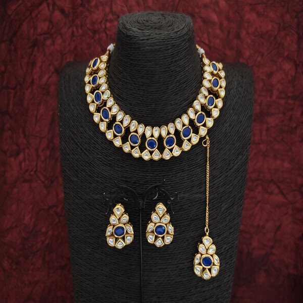 Designer Party wear High Gold Polish Kundan Choker Style Necklace Set