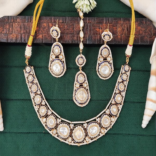 Kundan Jewellery Designer High Gold Polish Kundan Necklace Set