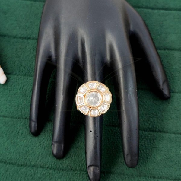 Ethnic High Gold Kundan Stone Adjustable Finger Ring