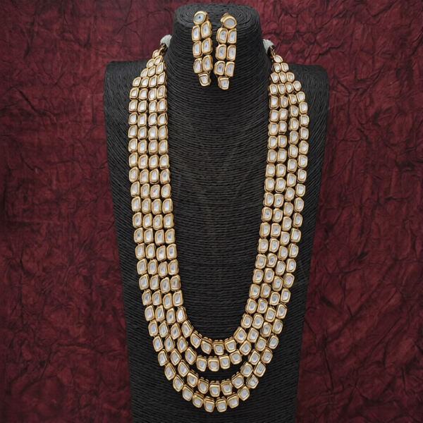 High Gold Polish Fancy Style Beautiful Long Kundan Necklace Set