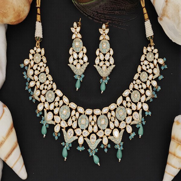 Kundan Jewellery High Gold Polish Party Wear Beautiful Kundan Short Necklace Set