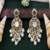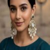 Kundan Mehendi Polish Clustered Pearl Party Wear Earrings