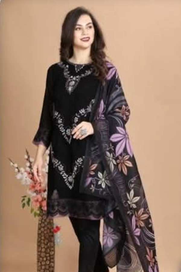 Faux Georgette | Top: Faux Georgette | Bottom: Cotton Strachable | Dupatta: Maslin