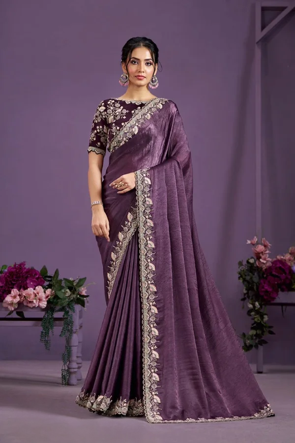 Saree : Crepe Satin Silk Crush | Blouse : Malai Satin Silk | Work : Sequence And Diamond Work