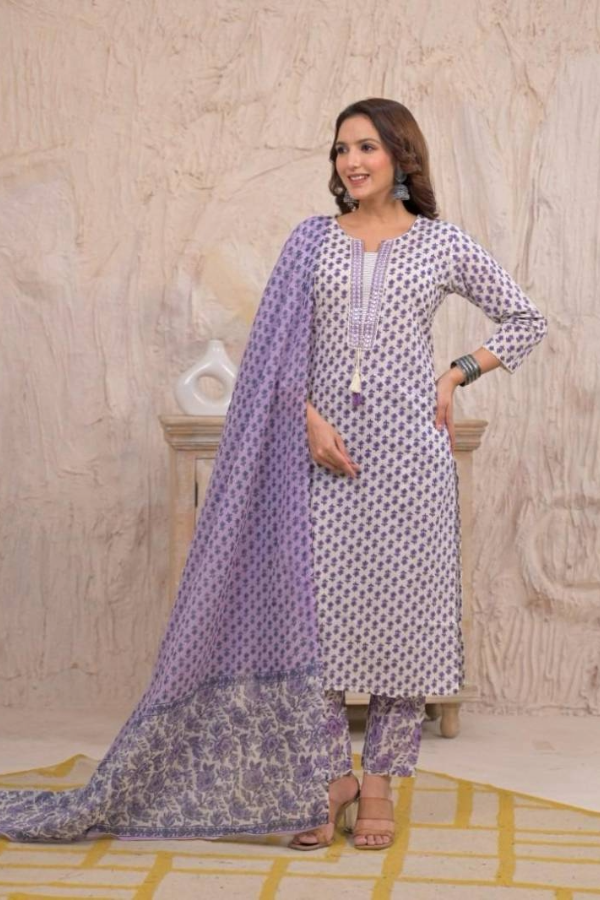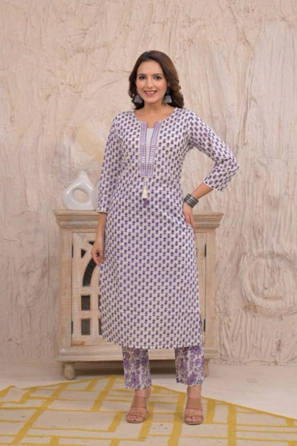 Naisha K 198 Jaipuri Cotton Designer Neck Pattern Kurta Set Collections