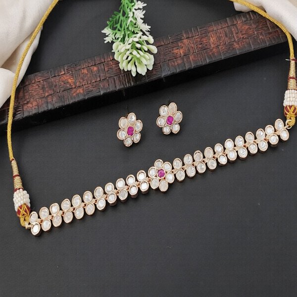 Designer Party wear High Gold Polish Kundan Choker Style Necklace Set