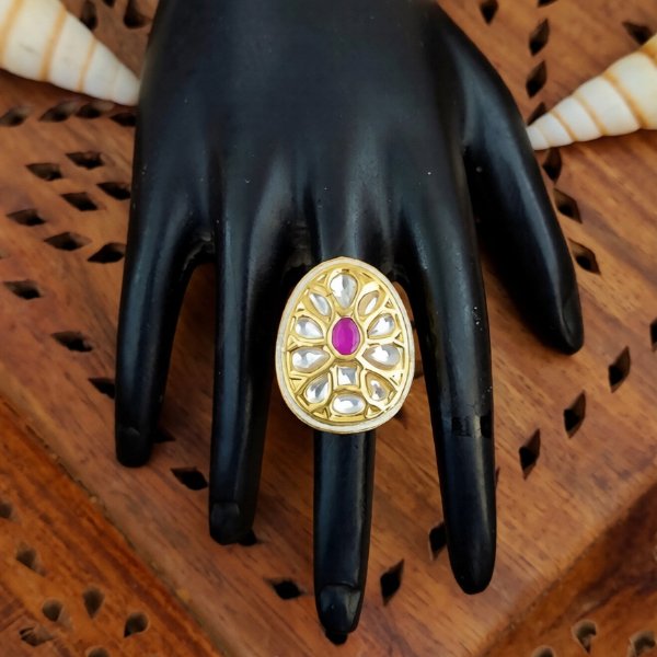 Teardrop Kundan Finger Ring with Multi Center Stone