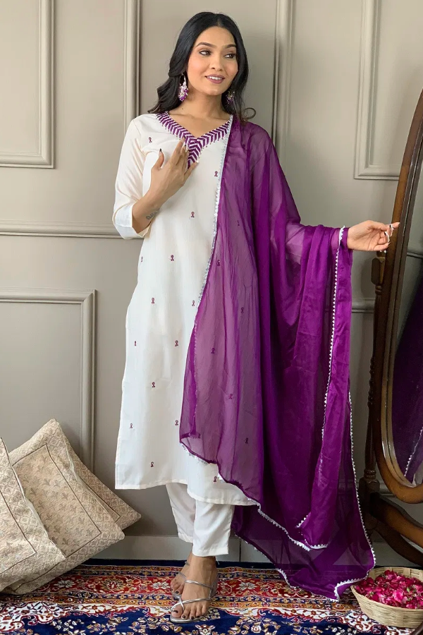 Fabric: Rayon | fabric – Rayon | Bottom – Rayon | Dupatta – Chinon | Work – Embroidery Sequence